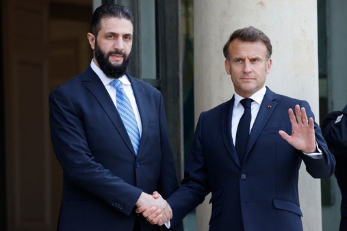 دعا الرئيس الفرنسي إيمانويل ماكرون الرئيس الانتقالي أحمد الشرع إلى القيام بكل الممكن "لضمان حماية جميع السوريين من دون استثناء"، وذلك خلال استضافته في باريس الأربعاء في أول زيارة له إلى دولة غربية.