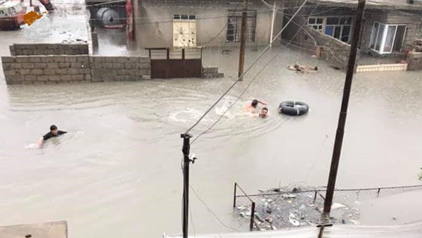 غمرت مياه السيول مناطق واسعة من عدة محافظات عراقية، اليوم الأربعاء، بعد استمرار هطول الأمطار لعدة ساعات منذ الليلة الماضية.