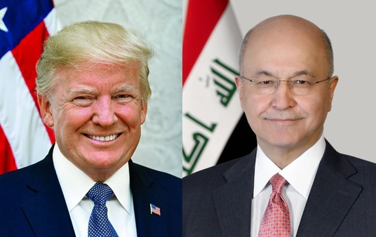 وأكد الرئاسة العراقية أن الرئيس العراقي برهم صالح، تلقى برقية تهنئة من رئيس الولايات المتحدة الأمريكية دونالد ترامب بمناسبة نوروز، مشيراً الى ان ترامب وأكد رغبة بلاده في بناء علاقات أمنية واقتصادية مع العراق بما يعزز سبل التعاون ويخدم المصالح المشتركة للبلدين.