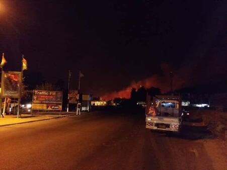 نتيجة حريق أتى على مخازن اسلحة بمنطقة طاسلوجة، في السليمانية دون أن يسفر عن وقوع خسائر بشرية".