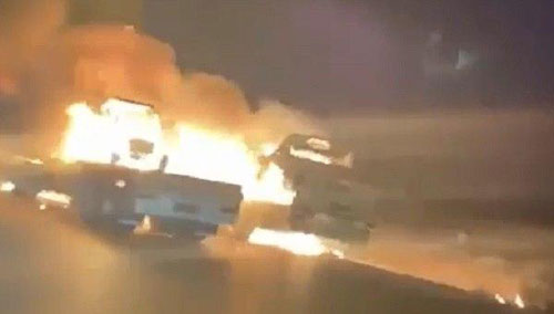 وأوضحت شرطة محافظة الديوانية، أمس السبت، أن "مسلحين يستقلون سيارات بيك آب أجبروا ناقلات تحمل حمولات متنوعة من بينها خمسة حاويات أثاث و٣ عجلات عسكرية- على التوقف وأنزلوا سائقيها ومن ثم أضرموا النار في الناقلات، وانسحبوا لجهة مجهولة".