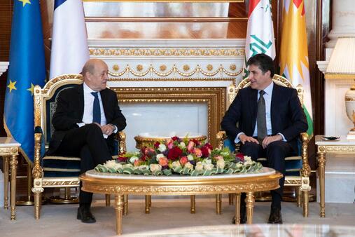 بحث نيجيرفان بارزاني رئيس إقليم كوردستان صباح اليوم الجمعة، مع جان إيف لودريان وزير خارجية فرنسا، مباشرة الحكومة الاتحادية الجديدة مهامها وعلاقات أربيل – بغداد واستمرار الحوار لحل المشاكل بينهما على أساس الدستور العراقي، حيث أكد بارزاني على أن "حل مشاكل إقليم كوردستان مع الحكومة العراقية هو مفتاح الاستقرار السياسي في العراق".