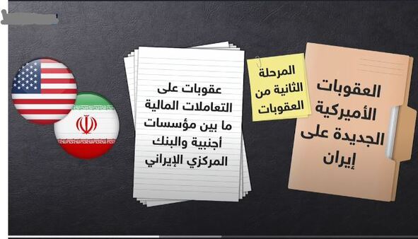وستأخذ المرحلة الثانية نطاقا أوسع بحلول نوفمبر المقبل، لتشمل قطاع تشغيل الموانئ والسفن، وأي تعاملات مالية ما بين مؤسسات أجنبية والبنك المركزي الإيراني، وكذلك قطاع الطاقة.