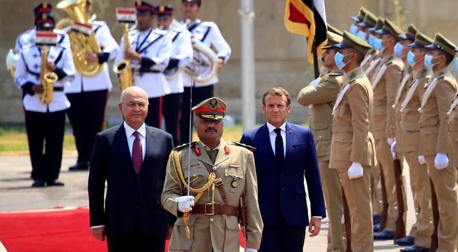 ووصل ماكرون في وقت سابق من اليوم الأربعاء العاصمة بغداد، حيث سيطلق مبادرة لدعم "مسيرة السيادة" في هذا البلد بالتعاون مع الأمم المتحدة.