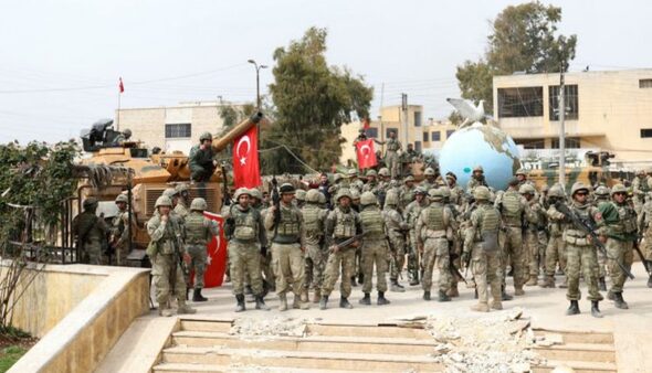 هذا وتسيطر تركيا على مناطق متعددة في الشمال السوري وكوردستان سوريا منها سري كانييه/رأس العين وكري سبي/تل ابيض ، بالإضافة إلى منطقة عفرين، وكذلك أرسلت جنودها و"مرتزقة" سوريين إلى ليبيا برفقة مستشارين من قواتها إلى ليبيا للمشاركة في القنال إلى جانب قوات حكومة السراج، وفق تقارير حقوقية متعددة.