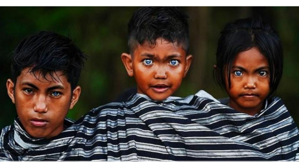 يتمتع أفراد شعب بوتون من جزيرة بوتون في إندونيسيا، التي تقع جنوب شرقي منطقة سولاويزي، بعيون زرقاء لامعة فريدة، وهو أمر نادر للغاية في إندونيسيا، حيث معظم الناس لديهم شعر داكن وعيون بنية أو سوداء داكنة، وذلك بسبب طفرة وراثية جينية تُعرَف باسم متلازمة "واردينبيرغ"، التي تؤثر على التصبغ.