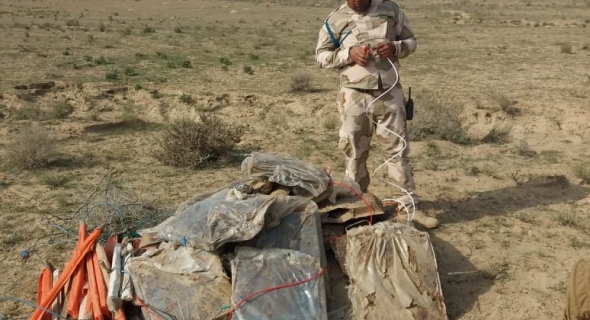 أكد مديرية جهاز الاستخبارات العسكرية التابع لوزارة الدفاع، أنه استولى على مخبأ يحتوي على كميات كبيرة من العبوات الناسفة في جزيرة البو نمر بالرمادي .