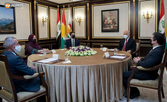 وقال الموقع الرسمي لرئاسة إقليم كوردستان في بيان اطلعت عليه زاكروس عربية إنه خصص الاجتماع للتباحث بشأن أوضاع العراق عموماً وأوضاع إقليم كوردستان خصوصاً، وفيما يخص أوضاع العراق تناول الاجتماع بحرص العبء المالي والأمني والصحي الثقيل على العراق وإقليم كوردستان، وأكد مساندة إقليم كوردستان للخطوات التي تتخذها الحكومة والمؤسسات الدستورية الاتحادية في سبيل حماية أمن واستقرار البلد، وخاصة في مجال تهيئة أجواء مستقرة لعمل ومهام ممثليات الدول الصديقة والبعثات الدولية في العراق.