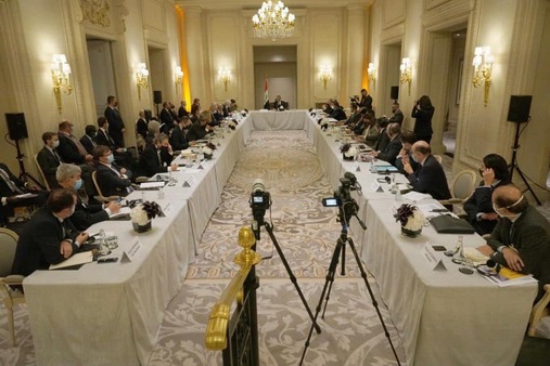 وقال المكتب الإعلامي لرئيس مجلس الوزراء، إن الاخير التقى عدداً من رؤساء الشركات الفرنسية على هامش جولته الأوروبية الحالية التي ابتدأت من العاصمة الفرنسية باريس، وأوضح خلال اللقاء مستوى التحديات التي يواجهها العراق بسبب التداعيات الاقتصادية لجائحة كورونا وانخفاض عائدات النفط.