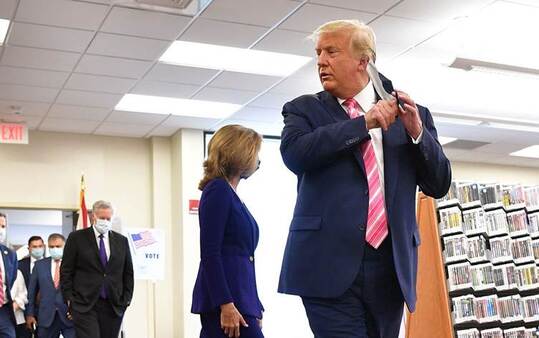 توجّه الرئيس الأميركي دونالد ترمب، اليوم السبت (24 تشرين الأول 2020)، إلى مكتب اقتراع في "ويست بالم بيتش" بفلوريدا للإدلاء بصوته مبكراً في الانتخابات الرئاسية الأميركية المقررة في 3 تشرين الثاني/نوفمبر.
