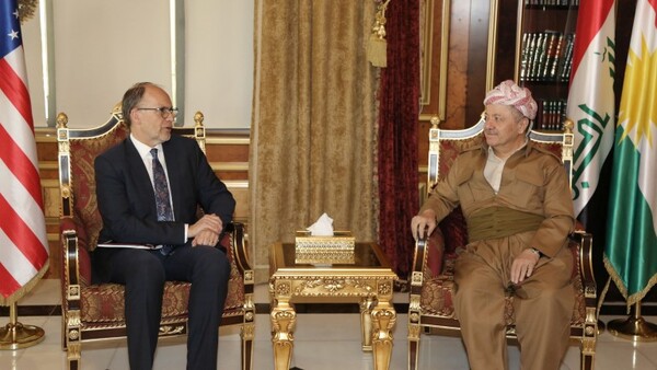 أستقبل الرئيس مسعود بارزاني في صلاح الدين، السفير الأمريكي في العراق، دوكلاس سليمان وستيفن فاكين القنصل العام الأمريكي في أربيل في اللقاء إستعرض السفير الأمريكي في العراق، للرئيس بارزاني، إستراتيجية بلاده حيال التطورات الإقليمية، والدور الفاعل للرئيس بارزاني وحكومة الإقليم في حماية النازحين العراقيين وإيوائهم خلال الحرب ضد الإرهابيين.