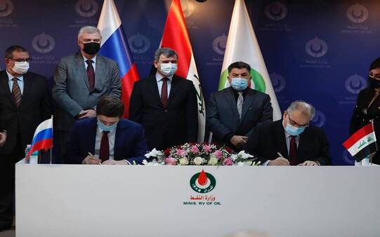 وحضر حفل التوقيع السفير الروسي في بغداد، مكسيم ماكسيموف، وعلى هامش الحفل تم تقديم عرض مختصر عن مشروع العقد الاستكشافي.