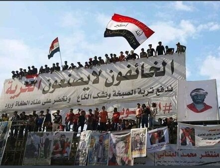 وشهدت ساحة الحبوبي في الناصرية توافدا للمتظاهرين منذ ليل الخميس– الجمعة، الذين أعادوا نصب شعار المتظاهرين "الخائفون لا يصنعون الحرية"، من خلال لافتة كبيرة وضعت إلى جانبها صور لقتلى التظاهرات في ذي قار.