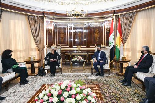 استقبل رئيس حكومة إقليم كوردستان مسرور بارزاني، اليوم الأحد (20 كانون الأول 2020)، الممثلة الخاصة للأمين العام للأمم المتحدة في العراق جينين هينيس بلاسخارت.
