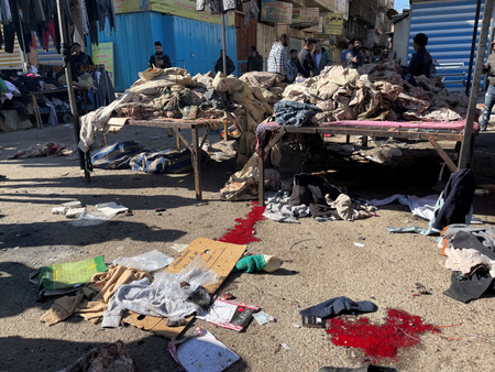 وأوضح بيان لوزارة الداخلية العراقية أن انتحاريا أول فجر نفسه في السوق "بعد أن ادعى أنه مريض فتجمع الناس حوله"، مضيفاً أن الانتحاري الثاني فجر نفسه "بعد تجمع الناس لنقل الضحايا الذين أصيبوا في التفجير الأول".