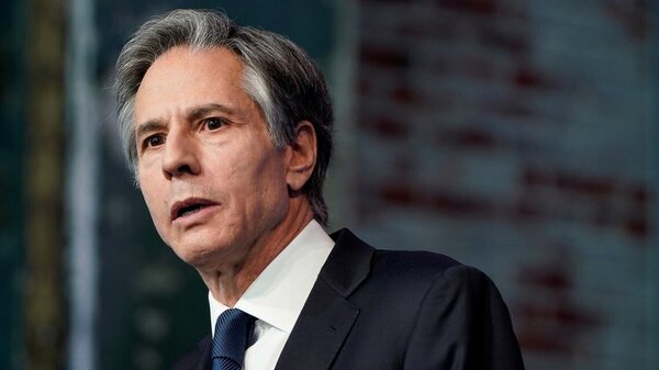 وشدد الوزير عند وصوله إلى مبنى الوزارة في واشنطن على افتتاح حقبة جديدة من السياسة الخارجية، قائلاً "إنه يوم جديد لأميركا والعالم"، وأضاف: "بعد أربع سنوات من الضمور، ستلعب وزارة الخارجية مرة أخرى دورًا رائدًا في علاقات أميركا مع الخارج"، وأشار إلى أن "أميركا في أفضل حالاتها، ولا تزال لديها قدرة أكبر من أي بلد آخر على وجه الأرض لتعبئة الآخرين من أجل الصالح العام".