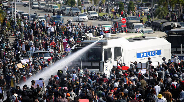 وكانت قوات الأمن استخدمت الغاز المسيل للدموع وخراطيم المياه والأعيرة المطاطية ضد متظاهرين، وسط تقارير معزولة عن إطلاق رصاص حي أيضا، وصعدت الشرطة إجراءاتها ضد الحزب مع مداهمة مقره، لكن المتظاهرين نزلوا إلى الشارع مجددا اليوم، في احتجاج سلمي في نايببداو العاصمة ومعقل الجيش، إضافة إلى رانغون كبرى مدن البلاد وعاصمتها الاقتصادية.