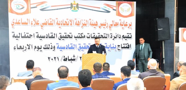 وأكد القاضي في كلمة له بحفل افتتاح بناية مكتب تحقيق القادسيَّة الجديدة بمحافظة الديوانيَّة، اليوم الإثنين (1 آذار2021)، تمسُّك الهيئة مُتمثّلةً بملاكاتها كافة بـ "مهنيَّتها" في تنفيذ "مهمَّتها الوطنيَّة" التي رسمها لها القانون، حاضاً على ضرورة الاضطلاع بمهمَّة إعادة تشييد ثقة الموطن بمؤسَّسات الدولة، وهدم مسعى الفاسدين الذين يحاولون التجاوز على القوانين وسرقة قوت المواطن.