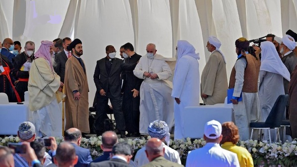 وقال البابا الفاتيكان خلال حضوره لإقامة صلاة موحدة في مسقط رأس النبي ابراهيم (ع)، في مدينة أور بمحافظة ذي قار إن "السماء تعطينا رسالة الوحدة".