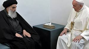 ووصف البابا السيستاني بأنه "رجل الله العظيم الحكيم"، مُضيفا: "إنه رجل لم يقف أبدًا لتحية شخص ما، ووقف معي مرتين".