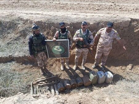 وأضاف "وفي قرية حردان التابعة إلى ناحية ربيعة، تمكنت مفارز الفوج الثاني لواء المشاة 71 الفرقة أعلاه، من العثور على مخبأ للعتاد من مخلفات داعش الإرهابية، ضمّ (3) جلكانات سعة 20 لتراً تدخل في صنع العبوات الناسفة، (9) عبوات ناسفة محلية الصنع، (4) مساطر تفجير، (4) مساطر تفجير، (3) قنبرة هاون عيار 82ملم، (3) رمانات قاذفة ضد الدروع، (2) مقذوفات عيار 155 ملم".