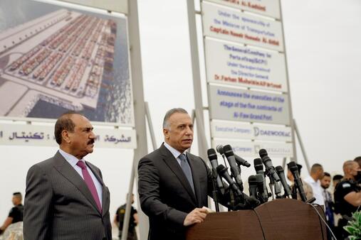 أعلن رئيس الوزراء مصطفى الكاظمي، اليوم الأحد (11 نيسان 2021)، البدء بمشروع ميناء الفاو الكبير، الذي انتظره البلد لسنوات طويلة، رغم رهان الكثيرين على إفشاله وعملوا لإحباط الشعب، مطالباً الشعب التحلي بالصبر والتكاتف "لبناء البلد من الفاو إلى زاخو".