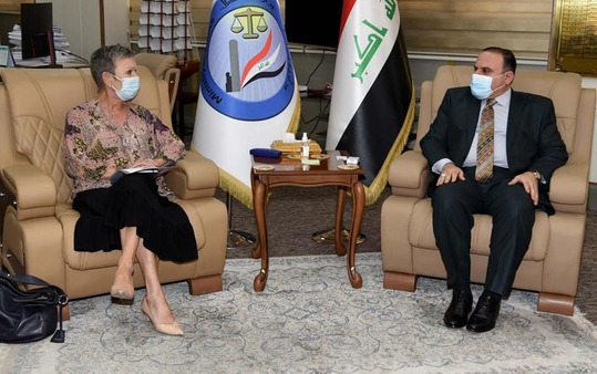 استقبل وزير العدل القاضي سالار عبد الستار محمد، اليوم الثلاثاء(13/4/2021)، في مكتبه الرسمي ببغداد، وفد بعثة الاتحاد الأوروبي الاستشارية في العراق برئاسة آنا مسكينين، و ممثل عن حقوق الإنسان جف هوبينبراورز.