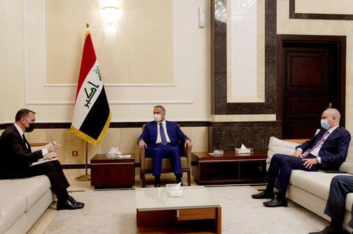 وأكد الكاظمي خلال اللقاء "حرص العراق على بناء علاقات متوازنة مع جيرانه، ودعم استقرار وأمن المنطقة عبر نهجه مبدأ الحوار والتهدئة اساسا لحل الكثير من القضايا والملفات".