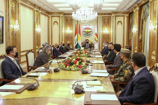 اجتمع نيجيرفان بارزاني رئيس إقليم كوردستان، القائد العام لقوات البيشمركة، ظهر اليوم الإثنين (3 أيار 2021)، في رئاسة إقليم كوردستان مع اللجنة العليا لإعادة تنظيم وتوحيد قوات البيشمركة، حيث تقرر العمل مع الجهات المعنية العراقية على سد الفراغ الأمني بين قوات البيشمركة والقوات الاتحادية.