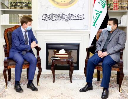 بحث مستشار الأمن القومي قاسم الأعرجي، اليوم الأربعاء (12 أيار 2021)، تأثيرات التصريحات الأخيرة التي أدلى بها السفير البريطاني لدى بغداد، خلال استقباله السفير ستيفن هيكي.