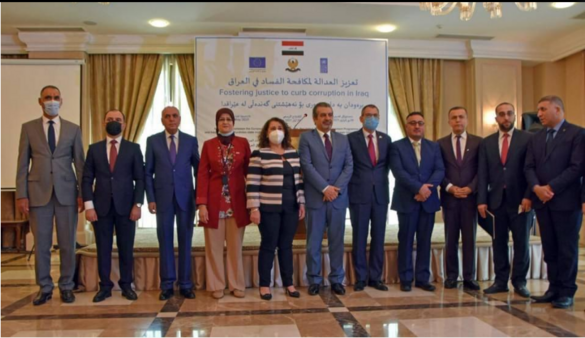 مشروع دعم مبادرات العدالة لمكافحة الفساد وتعزيز تسوية المنازعات التجارية "يعتمد على الجهود الوطنية العراقية لتعزيز الشفافية والمساءلة عبر مؤسسات الدولة ويدعم العراق للوفاء بالتزاماته الوطنية والدولية فيما يتعلق بمكافحة الفساد ، وفق البيان المشترك