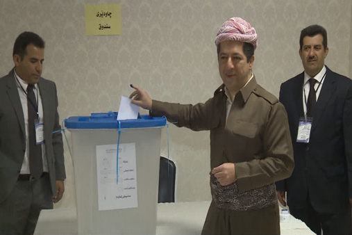 ادلى مسرور بارزاني رئيس مجلس امن اقليم كوردستان بصوته صباح اليوم في عملية التصويت على استقلال كوردستان . وتشهد مراكز الاقتراع اقبالاً جماهيرياً واسعاً لم يسبق له مثيل للتصويت على استقلال اقليم كوردستان .