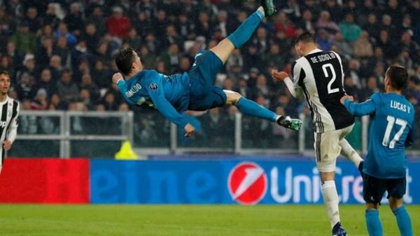 وسجل رونالدو بكرة مقصية أكروباتية، هدفا لصالح فريقه السابق ريال مدريد الإسباني في مرمى فريقه الحالي في ذهاب الدور ربع النهائي لدوري الأبطال، في هدف اعتبره محللون من الأجمل في تاريخ المسابقة.