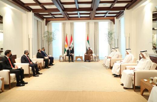 وقالت رئاسة إقليم كورستان في بيان اطلعت عليه زاكروس عربية: خلال اجتماع سمو الشيخ محمد بن زايد آل نهيان ولي عهد أبو ظبي نائب القائد العام للقوات المسلحة الإماراتية مع فخامة نيجيرفان بارزاني رئيس إقليم كوردستان، أكد سموه استمرار دعم بلاده لإقليم كوردستان والعراق ورغبتها في تطوير العلاقات وتوسيع مجالات الشراكة والتعاون مع إقليم كوردستان.