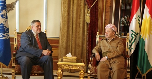 استقبل الرئيس مسعود بارزاني في صلاح الدين الممثل الخاص للامين العام للامم المتحدة في العراق.