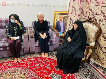 قامت ممثلة الامم المتحدة في العراق جينين هينيس بلاسخارت، اليوم الخميس (24 حزيران 2021)، بزيارة والدة الناشط المدني إيهاب الوزني في منزلها بمحافظة كربلاء المقدسة.