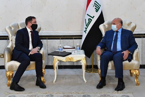 تسلَّم وزير الخارجيّة العراقية فؤاد حسين، اليوم الخميس (8 تموز 2021)، نسخة من أوراق اعتماد السفير البريطاني الجديد لدى بغداد مارك برايتن.