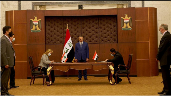 أجري اليوم السبت (24 تموز 2021)، في بغداد مراسم توقيع اتفاق مع لبنان لبيع زيت الوقود الثقيل بالسعر العالمي، وذلك بحضور رئيس مجلس الوزراء الاتحادي مصطفى الكاظمي.