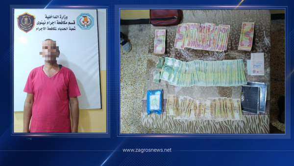 وضبط بحوزة المتهم خلال اعتقاله في منطقة الأحمدية بالجانب الأيمن في مدينة الموصل، المبلغ الذي قام بسرقته ومقداره ستة ملايين ومئتي ألف دينار.