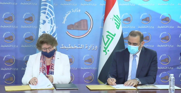 ووقع الاتفاقية عن الجانب العراقي وزير التخطيط، خالد بتال النجم، فيما وقعها عن بعثة الأمم المتحدة في العراق نائبة الممثل الخاص، ومنسقة الشؤون الإنسانية إيرينا سولورانو.