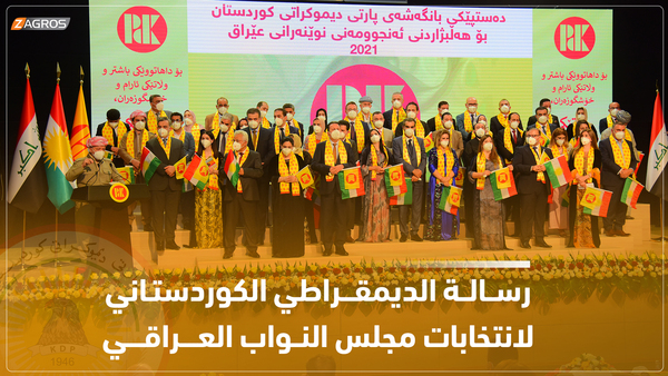 سنشارك جميعا تحت طيف وإشراقة الديمقراطية وبإيماناً منّا بالرؤية السياسية الواضحة للحزب الديمقراطي الكوردستاني وكذلك بعزيمة البيشمركة وتحت شعار (من أجل مستقبل أفضل ووطن آمن ينعم بالرفاهية، انتخب حزبا قويا) في هذه الانتخابات المصيرية. الدعم الجماهيري الواسع للحزب الديمقراطي الكوردستاني في هذه الانتخابات، سيجعل من تاريخنا أكثرا تجسيدا والأوقات أكثر إنتاجاً ومستقبلنا أكثر إشراقا. من أجل هذا، نطالبكم أن تصوتوا يوم 10 تشرين الاول 2021 وذلك في احتفال وطني زاهر الالوان للحزب الديمقراطي الكوردستاني، الحزب الصادق الذي يحافظ ويصون القضية الكوردية. نحن نعمل بجد وإخلاص من أجل صوت كل ناخب، من أجل تقوية عضدنا في بغداد ومن أجل حماية حقوق الكوردستانيين.