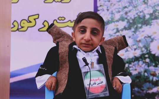 وقال المسؤول عن مركز تسجيل الأرقام القياسية في إيران، قاسم علي رضائي: "يبلغ السيد قادرزادة 20 سنة من العمر، وطوله 64 سنتمتراً ووزنه ستة كيلوغرامات، وهي ثلاث ميزات تجعل منه شخصاً مميزاً. ينتمي السيد قادرزادة إلى عائلة معدمة بحاجة إلى عون المسؤولين في المنطقة والبلد".