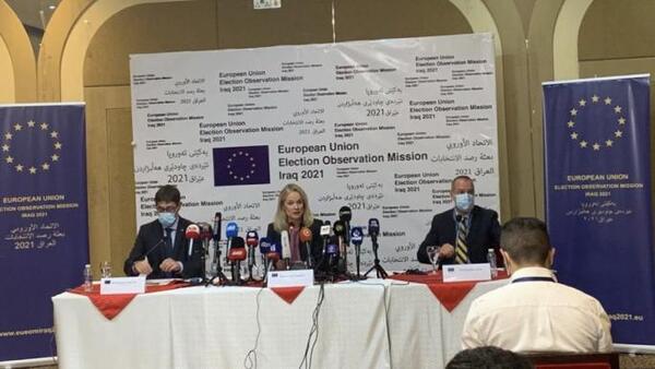 وأوضحت أن "بعثة الاتحاد الأوروبي لرصد الانتخابات موجودة هنا بناء على دعوة من المفوضية العليا المستقلة للانتخابات في العراق. إن تفويضنا هو رصد العملية وتقديم تقرير عنها".