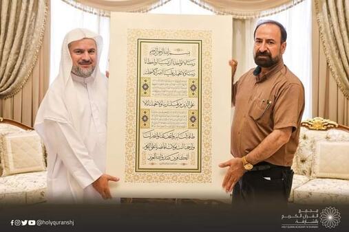 زار الخطاط الكوردي بژار أربيلي، يوم أمس الأربعاء (20 تشرين الأول 2021)، مجمع القران الكريم بالشارقة، في الإمارات العربية المتحدة، مصطحباً مجموعة من لوحاته المميّزة والتي أهداها للمجمع.