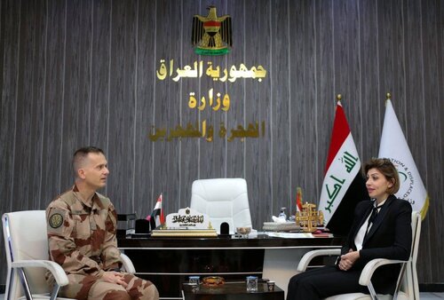 وذكر بيان للوزارة أن الوزيرة جابرو استقبلت وفداً من التحالف الدولي ضم كلا من العميد فنسنت كوست من القوات الجوية الفرنسية، واللفتنانت كولونيل يورج ويتوشيك من الجيش الألماني، في مبنى الوزارة وسط العاصمة بغداد.