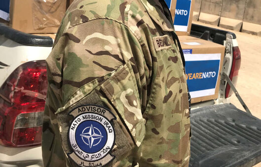 ويدعم حلف الناتو، العراق في تعزيز مؤسساته الأمنية والقوات المسلحة، لتحظى بقدرة اكبر على تحقيق الاستقرار في بلدهم ومحاربة الإرهاب ومنع عودة داعش، ولتحقيق ذلك، يقدم الناتو المشورة إلى المسؤولين العراقيين المعنيين في قطاعي الدفاع والأمن العاملين في وزارة الدفاع ومكتب مستشار الأمن الوطني ومركز العمليات الوطني التابع لرئيس الوزراء.