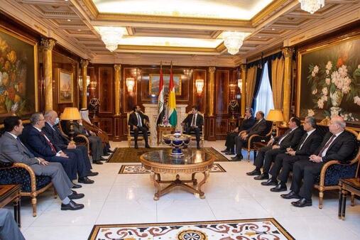 واستقبل رئيس إقليم كوردستان نيجيرفان بارزاني، اليوم الثلاثاء ( 7 كانون الأول 2021)، رئيس تحالف تقدم محمد الحلبوسي، في أربيل.