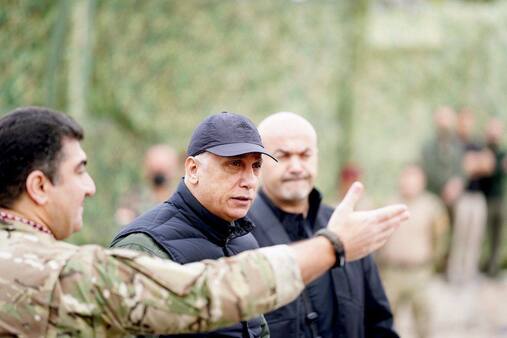وكان في استقبال الكاظمي بطريق ذهابه إلى قضاء مخمور رئيس حكومة إقليم كوردستان مسرور بارزاني.