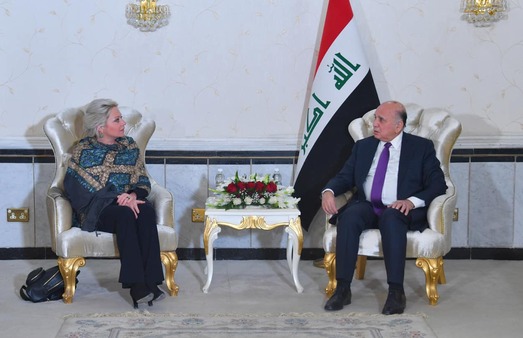 التقى وزير الخارجيَّة فؤاد حسين، اليوم الإثنين (13 كانون الأول 2021)، ممثلة الأمين العام للأمم المتحدة في العراق، جنين بلاسخارت وبحثا معاً ملف حقوق الإنسان في العراق.