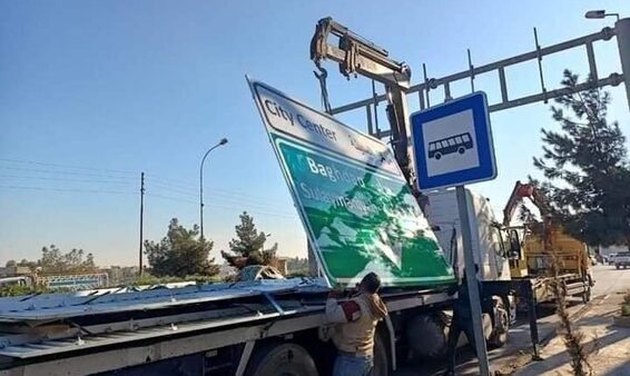 وذلك تنفيذاً لقرار صادر عن محافظ كركوك بالوكالة، راكان الجبوري، حيث تمت إزالة اللوحات والشاخصات المرورية التي تحمل مسميات مكتوبة بالكوردية إلى جانب العربية.